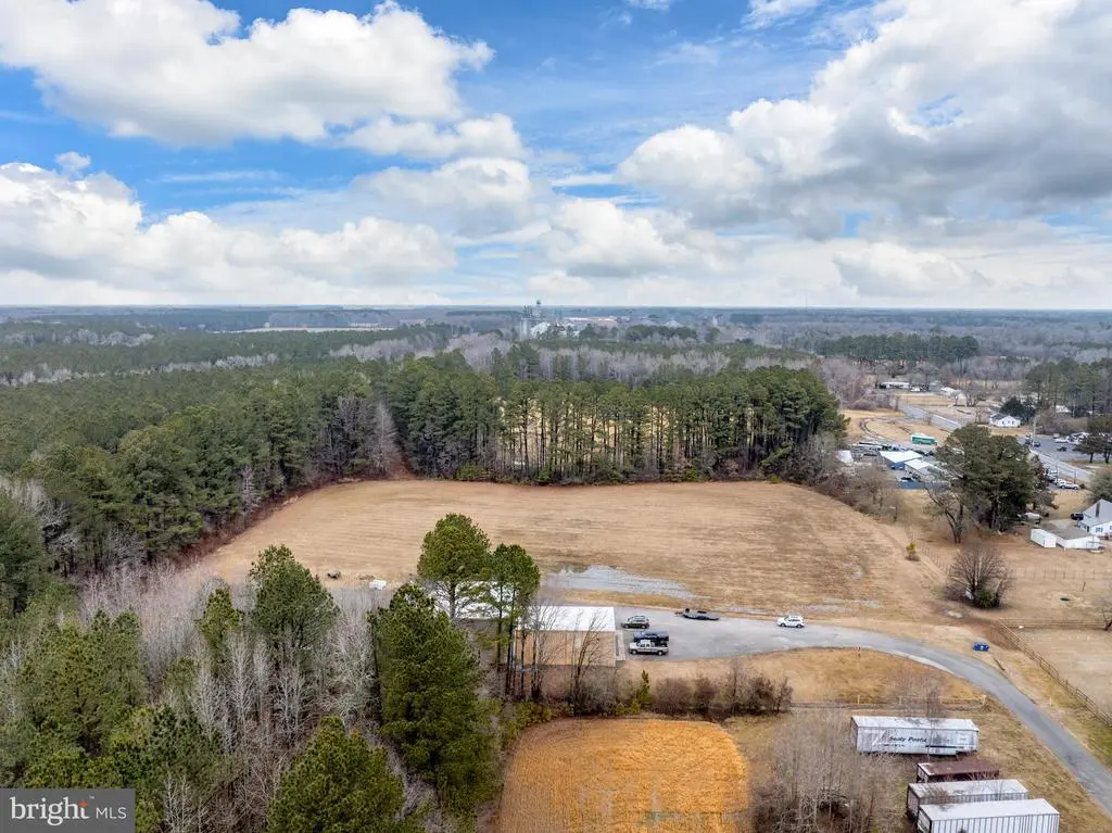 This is a commercial property for sale in Delmar Delaware 5 acres of land with plenty of parking and potential for more. the front building is 40x50 attached to the back building that is 45x60 a total of 4700 sq ft. Back building has a built in Crane and office space with a work shop. The front of property is in county and the back of property is in town limits.